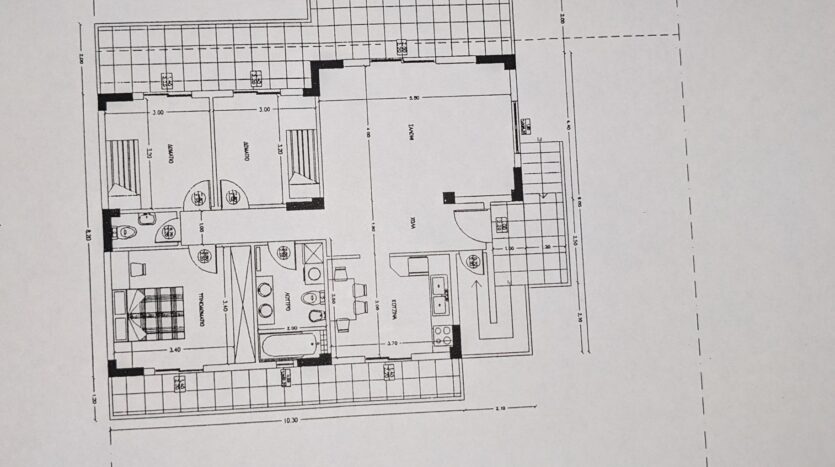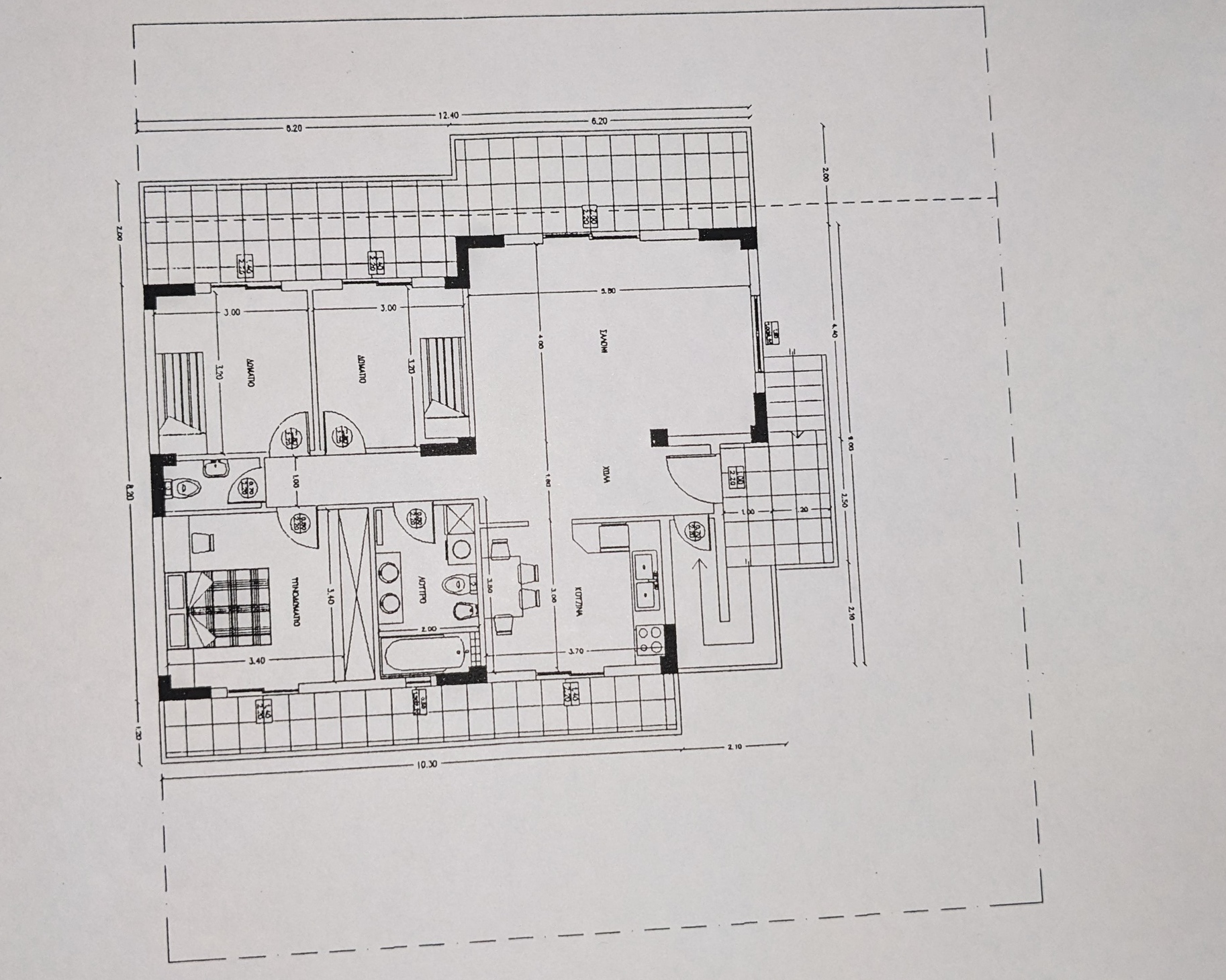 Το ακίνητο είναι 330 τ.μ. και αποτελείτε από 2 διαμερίσματα των 110 τ.μ. το καθένα, έχει γκαράζ και ένα μικρό διαμέρισμα στο υπόγειο. Το κάθε διαμέρισμα έχει 3 υπνοδωμάτια, 1 WC , 1 μπάνιο ,1 κουζίνα και μεγάλο σαλόνι.